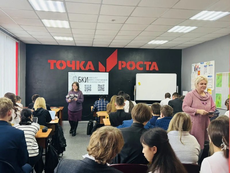 Старшеклассники узнали о правилах приёма в 2026 году, образовательных программах, перспективах трудоустройства по направлениям факультета, студенческой жизни и получили информационные материалы о факультете.