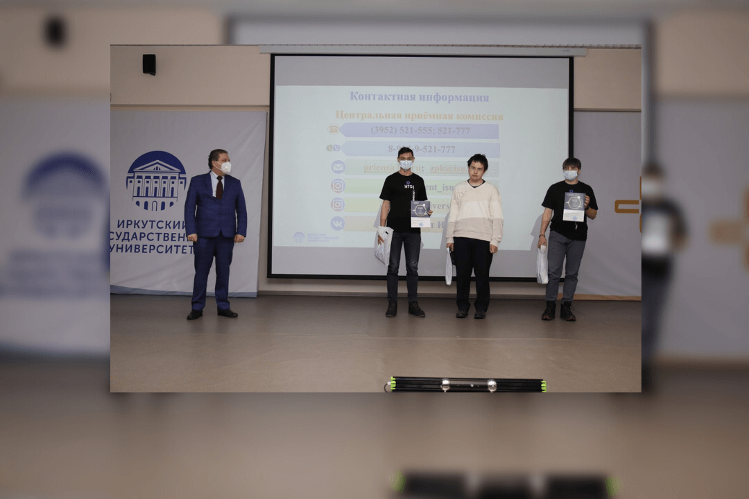 26 марта ректор ИГУ Александр Фёдорович Шмидт вручил дипломы и подарки одиннадцатиклассникам иркутского лицея № 2 Ярославу Степанову, Ивану Жовтому и Георгию Воловикову — призерам Национальной технологической олимпиады по профилю «Технологии виртуальной и дополненной реальности: дополненная реальность». Награждение состоялось в Научной библиотеке им. В. Г. Распутина ИГУ на общеуниверситетском дне открытых дверей.