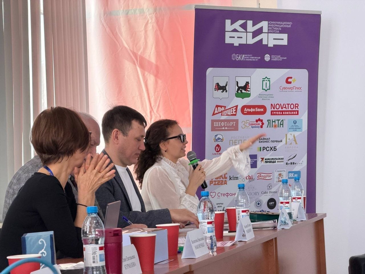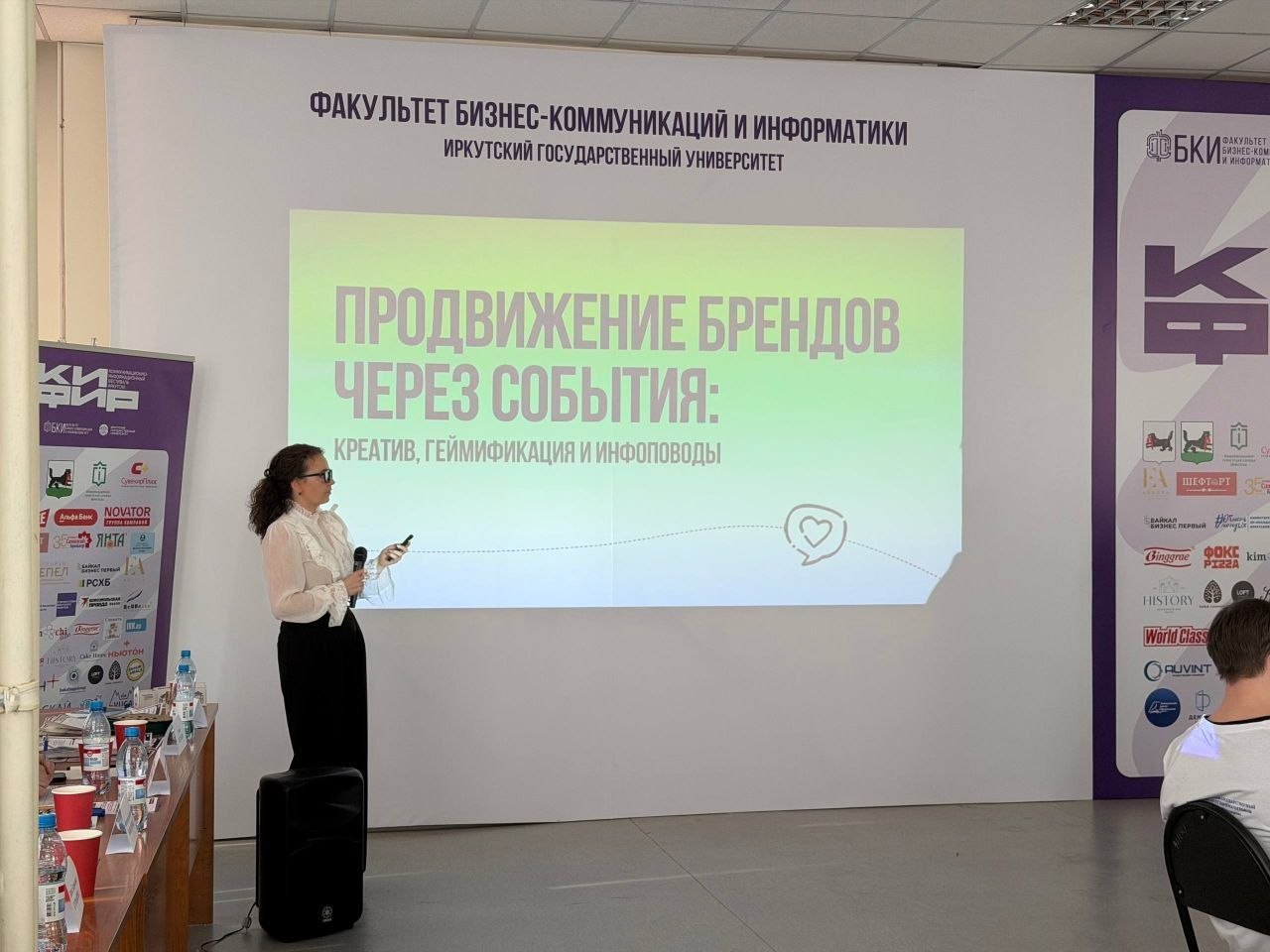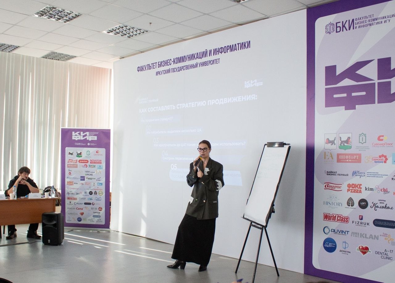 Перед участниками выступили выпускники ФБКИ ИГУ. Рилс-продюсер Дмитрий Сергунов продемонстрировал примеры продвижения через короткие видео, а PR-директор ивент-агентства" Аврора" Елена Кухта раскрыла особенности рекламы и PR брендов с помощью событий.