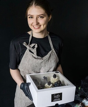 Елизавета Молодцова, 4 курс, «Реклама и связи с общественностью» — Кондитерским делом занимаюсь более двух лет. Решила порадовать свою подругу на день рождения и приготовила ей свой первый̆ в жизни торт, и его попробовала сестра моей подруги. Он ей безумно понравился, она попросила приготовить такой же торт для ее мамы. Так все началось. Меня подкупают в профессии кондитера искренние эмоции заказчиков, которым нравится то, над чем ты так долго и упорно старался, это невероятно мотивирует!