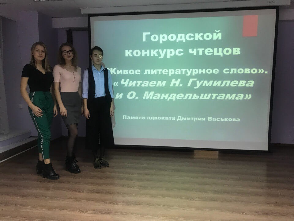 В Гуманитарном центре-библиотеке имени семьи Полевых второй раз прошёл городской конкурс чтецов «Живое литературное слово». Конкурс состоял из трёх этапов и был организован совместно с адвокатской палатой Иркутской области, которая инициировала его проведение в память своего коллеги — адвоката Дмитрия Васькова, большого ценителя и знатока поэзии. В этом году конкурсанты должны были представить жюри и многочисленным зрителям конкурса свою трактовку произведений наиболее ярких представителей Серебряного века — Николая Гумилёва и Осипа Мандельштама. По сравнению с прошлым годом конкурс прошёл более масштабно, в нём приняло участие намного больше ребят. Организаторы даже провели отборочный тур, после успешного прохождения которого в финал вышли 14 школьников и 11 студентов. В их числе были студенты нашего факультета. Алёна Кузнецова (4 курс) выступала со стихотворением Николая Гумилева «Рабочий». Еще одно произведение Гумилёва — «Орел» выбрала для выступления Анастасия Чумаченко (2 курс). А Цыремжит Аюрова (2 курс) прочитала стихи Осипа Мандельштама «Актер и рабочий». По итогам конкурса Анастасия Чумаченко и Цыремжит Аюрова заняли 2 и 3 места соответственно. Девушки поделились с нами своими впечатлениями. «В прошлом году этот конкурс проводился впервые, там я заняла 1 место среди студентов, участников было не так много и отборочного тура не было. В этот раз каждый из участников читал выбранное им произведение замечательно, намного лучше, чем на отборочном этапе. И это вызывало огромное волнение, потому что с таким высоким уровнем выступлений победить мог каждый. Поучаствовать в этом конкурсе ещё раз, встретить доброжелательных организаторов, участников прошлого года, познакомиться с новым составом жюри было приятно. Надеюсь, в следующем году удастся поучаствовать снова, и, может быть, снова занять призовое место», — рассказала Анастасия Чумаченко. «Как отмечал один из председателей жюри, в этом году уровень чтецов намного выше, и я, пожалуй, соглашусь с этим. Участие принимали не только студенты, но и учащиеся старших классов школ, которые читали не хуже студентов, а некоторые и намного лучше. Атмосфера в зале, где читают стихи для меня всегда воодушевляющая, вдохновляющая, и хотелось бы побольше таких конкурсов чтецов. Это здорово, когда из года в год продолжают выступать знакомые лица. Ты их узнаешь и думаешь про себя: „Талантливый мальчик/девочка, как бы мне ему/ей составить конкуренцию“. И впечатления, безусловно, остались только положительные», — поделилась мнением Цыремжит Аюрова. Мы поздравляем всех победителей и участников, в первую очередь, конечно, наших талантливых студентов и желаем совершенствоваться дальше, развивать свои навыки и покорять новые вершины! Людмила Апоник,