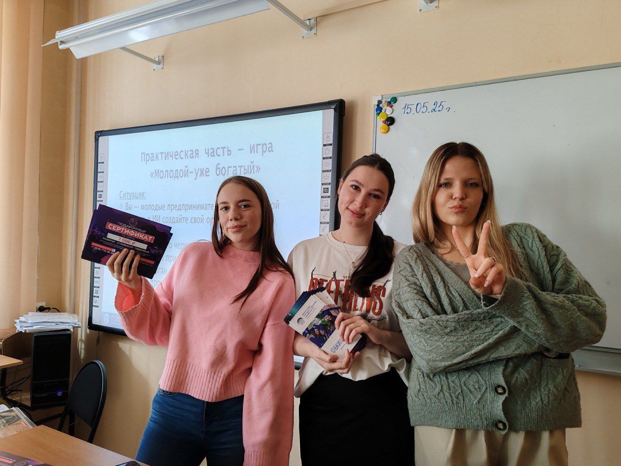 Уроки в школе – это один из проектов по дисциплине «Фандрайзинг», на которой студенты учатся находить ресурсы для реализации своих идей. Поэтому организаторы заручились поддержкой стрелкового клуба «Патриот» и вручили школьникам подарочные сертификаты на игру как символ стремления к цели.