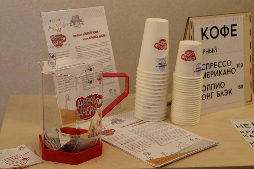 С самой первой встречи для них было определено направление работы: акция «Добрый кофе. Кружка добра». Эта акция проводится в рамках проекта «Особые дети рядом», направленного на создание центра поддержки и сопровождения семей, воспитывающих детей с особенностями развития. Заказывая напиток с пометкой «добрый» в кофейнях, которые присоединились к акции, процент с покупки перечисляется на реализацию проекта «Особые дети рядом». Цель акции «Добрый кофе. Кружка добра» не только собрать деньги, но и предоставить возможность жителям города сделать доброе дело, показать, что благотворительность — это не сложно, это приятно и даже очень ароматно.