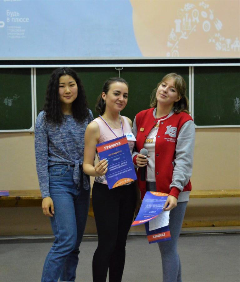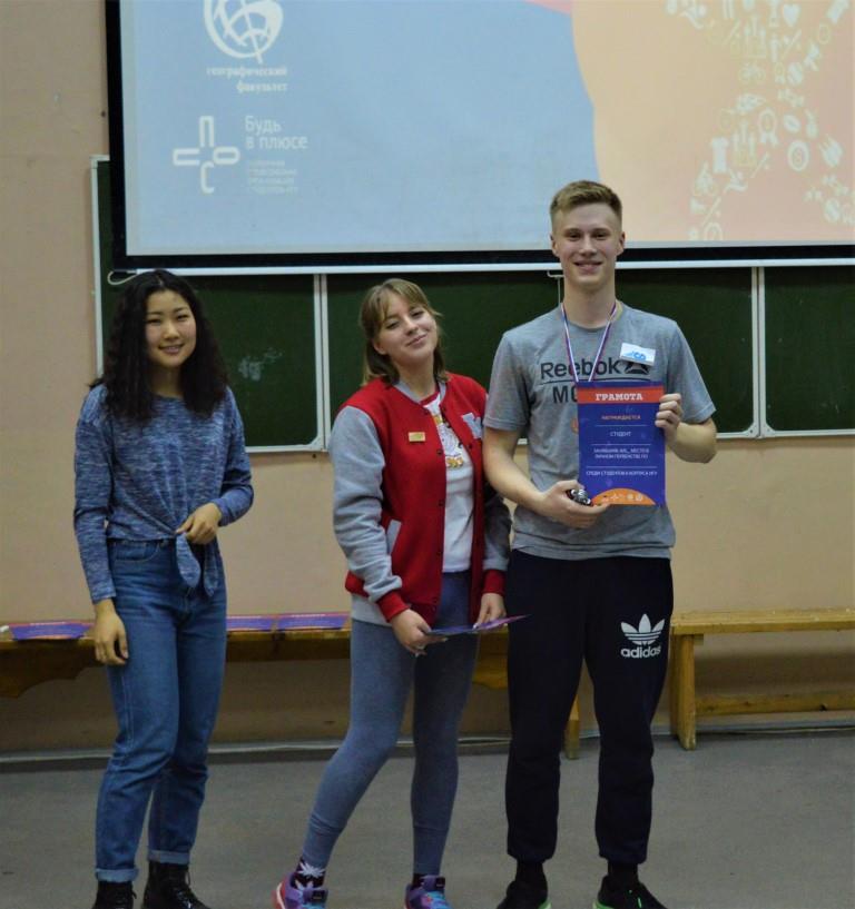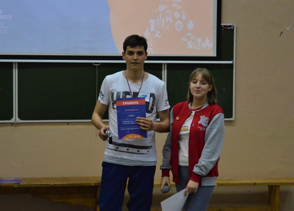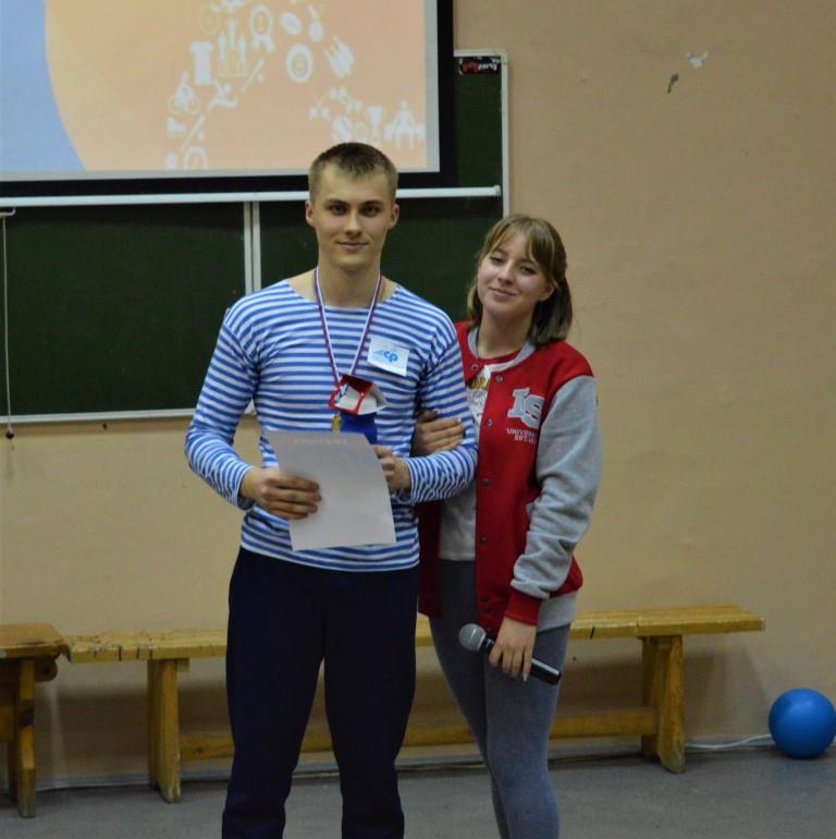 Анна Коновальцева — 1 место за прыжки в длину Владислав Кузнецов — 1 место за отжимания Юлия Соловьёва — 2 место за планку Андрей Новиков — 3 место за поднятие гири Татьяна Макарова — 3 место за планку Татьяна Макарова — 3 место за прыжки на скакалке Тимур Жулевич — 3 место за отжимания Тимур Жулевич — 3 место за прыжки на скакалке Ребята проявили себя как очень дружная, сплоченная и спортивная команда, во время проведения конкурса в стенах корпуса ощущалась невероятная дружеская атмосфера и сильный командный дух! Мы поздравляем наших студентов с победой в конкурсе и заполучением призовых мест в конкурсах личного зачёта и желаем дальнейших успехов!