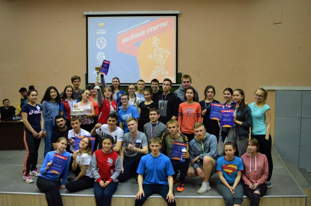 27 апреля на факультете сервиса и рекламы ИГУ прошёл ежегодный спортивный конкурс «Весёлые старты». Участие в конкурсе приняли команды студентов факультетов шестого корпуса: факультета сервиса и рекламы, географического и химического факультетов. В программу веселых стартов входили упражнения с номинациями личного первенства: планка, прыжки в длину, отжимания, поднятия гири, набивание мяча и прыжки на скакалке, а также командная эстафета. Команда, состоящая из пяти юношей и пяти девушек, принимала участие в конкурсах, которые оценивались различным количеством баллов. В этом году команда факультета сервиса и рекламы ИГУ впервые заняла первое место в командном зачете, забрав победу у географического факультета с минимальным отрывом в баллах и получив переходящий кубок! Студенты нашего факультета также заполучили призовые места в номинациях личного первенства: