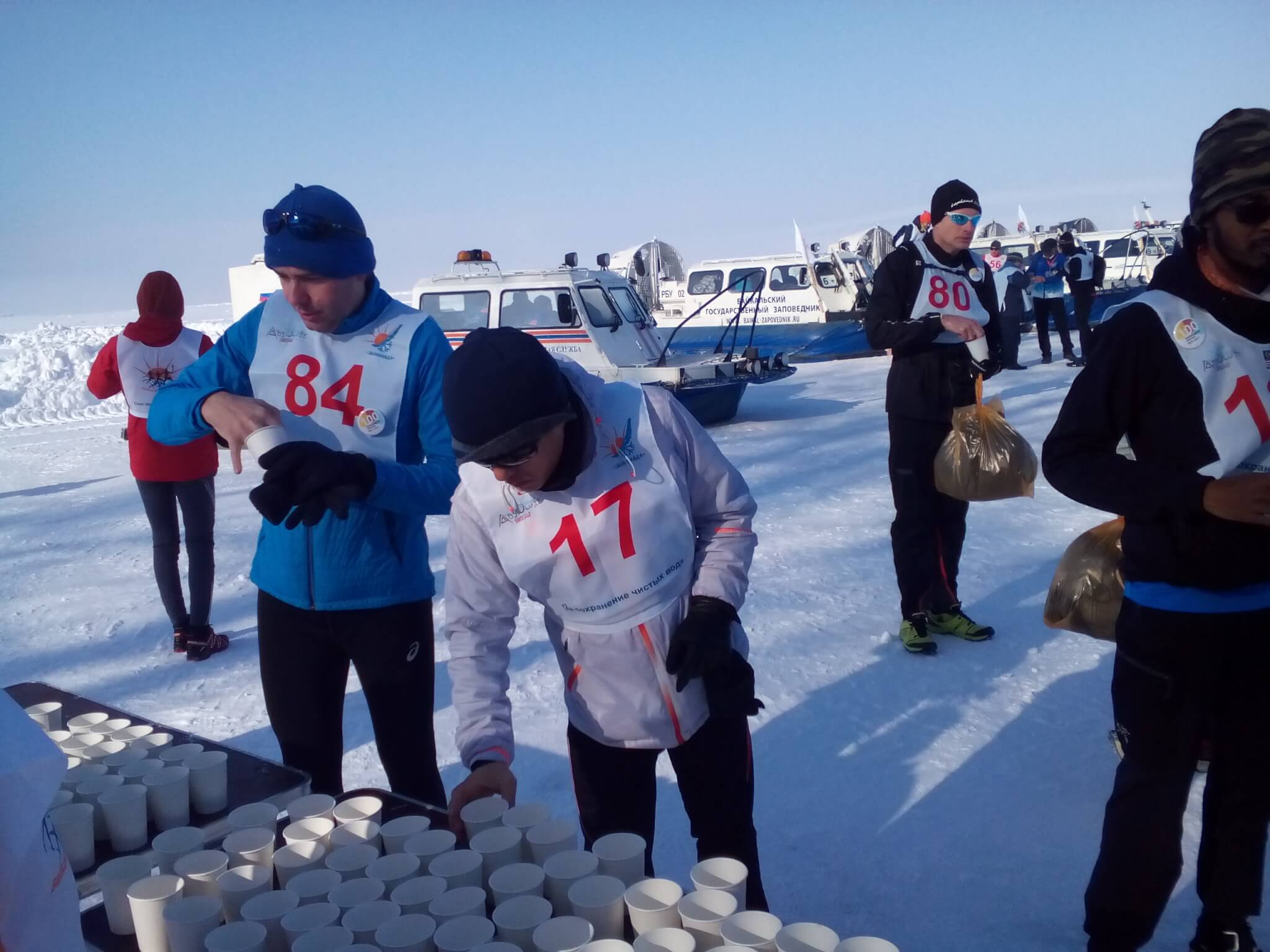Байкальский Ледовый Марафон-2017 «За сохранение чистых вод Байкала» прошел 7 марта. В этом году в нем приняло участие рекордное количество бегунов — 200 из 32-х стран (Германия, Польша, Китай, США, Япония, Канада, Индия и др.). Старт был дан в Танхое, в Бурятии. Финишировали спортсмены в Листвянке. Бежали марафонскую дистанцию — 42 км 195 м. Общее руководство подготовкой и проведение Байкальского Ледового Марафона осуществляло ООО «Абсолютная Сибирь». «Замерзание Байкала этой зимой происходило чуть медленнее, чем среднестатистически, но конечно быстрее чем в предыдущие 2 года. Первый лед на Байкале появился на Малом Море, в р-не о-ва Ольхон, уже 12 декабря 2016 г. В ночь на старый новый год (13−14 января), дувший уже три дня кряду продольный ветер „верховик“ с северо-востока нагнал ледяные поля на самый юг Байкала, где они успешно „спаялись“, как только „верховик“ утихомирился. С 19 по 21 января несплошной ледостав наблюдался лишь на участке пос. Танхой — Бабушкин. До 24 января оставалось несколько незамерзших участков воды у восточного побережья южной части Байкала, в районе предполагаемого старта ледового марафона. Но 25 января Байкал встал полностью…» — поделился об условиях подготовки мероприятия Андрей Таничев, доцент кафедры туризма, руководитель группы поддержки марафона. Он же и проводил первичный инструктаж для волонтеров этого мероприятия. В числе волонтеров — студенты факультета сервиса и рекламы направления подготовки «Туризм» Катунцев Святослав, Савельева Анастасия и Чистова Оксана. Своими впечатлениями от проведения этого событийного мероприятия они поделились во время учебного занятия по «Безопасности туризма»: «Погода в день марафона стояла хорошая — солнечно, безветренно и тепло. К утру трасса была полностью готова: проверена толщина льда, чистота трассы и ее маркировка. Место старта в Танхое, недалеко от визит-центра Байкальского заповедника. Ближе к 9 часам волонтеры начали подготовку: установили флаги, сформировали коробки с провизией для спортсменов, получили последние инструкции. Наготове были медицинская служба, спасатели БПСО, МЧС, «Хивусы» и сотрудники «Байкальского государственного заповедника». После небольшой разминки и знакомства с окрестностями спортсмены отдают дань бурятским традициям — «бурханят». На марафоне «бурханят» молоком: макают безымянный палец в молоко и разбрызгивают щелчком по четырем сторонам света. После обряда молоко выпивают. Это как бы гарантирует удачу во время забега.