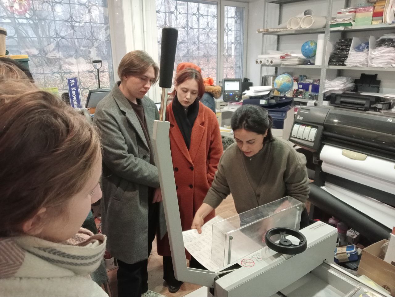 Четверокурсники побывали в головном офисе предприятия и непосредственно на самом производстве, где увидели, как осуществляется деятельность копицентра, узнали о нюансах работы с тампопечатью и тиснением, об обязанностях каждого цеха, смогли понаблюдать путь создания сувенирной продукции от момента поступления заказа до его изготовления.