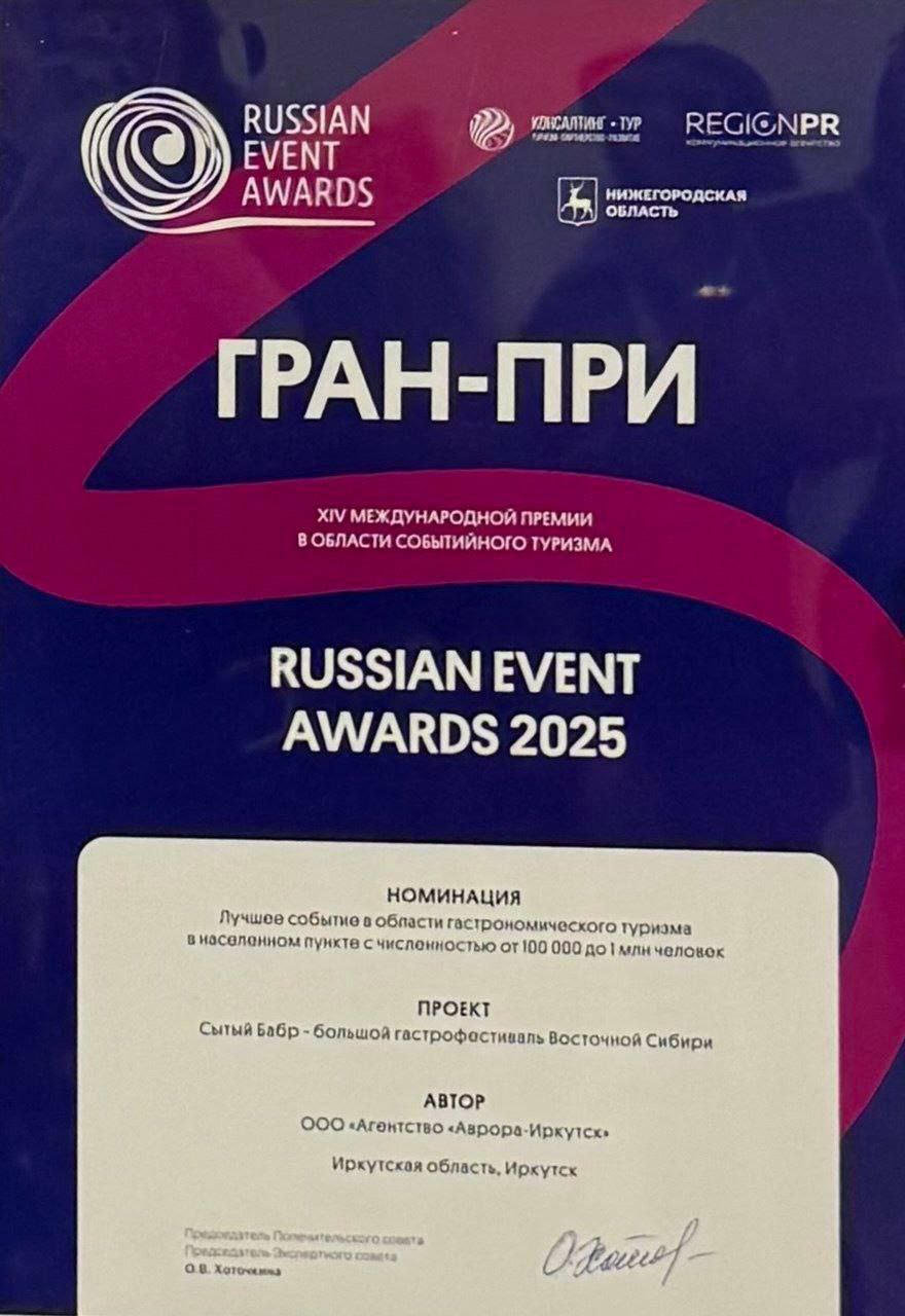 Мы любим делиться успехами выпускников. Елена Кухта, PR-директор event-агентства «Аврора», продюсер фестиваля «Сытый бабр» достойно презентовала это событие на международной премии Russian Event Awards. Результат получился впечатляющим: фестиваль получил гран-при в номинации «Лучшее событие в области гастрономического туризма».